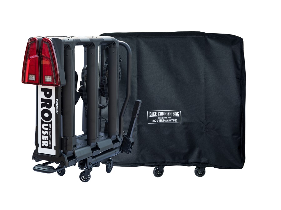 Pokrowiec zaprojektowany do przechowywania platformy rowerowej Pro-User FG Silver i Black. Wykonany z tkaniny poliestrowej w kolorze czarnym o wysokiej wytrzymałości. Zapewnia ochronę bagażnika przed negatywnym działaniem czynników zewnętrznych - zarysowaniami, otarciami, zabrudzeniami i kurzem. Pokrowiec przeznaczony do przechowywania złożonego bagażnika, posiada specjalne otwory do przenoszenia.