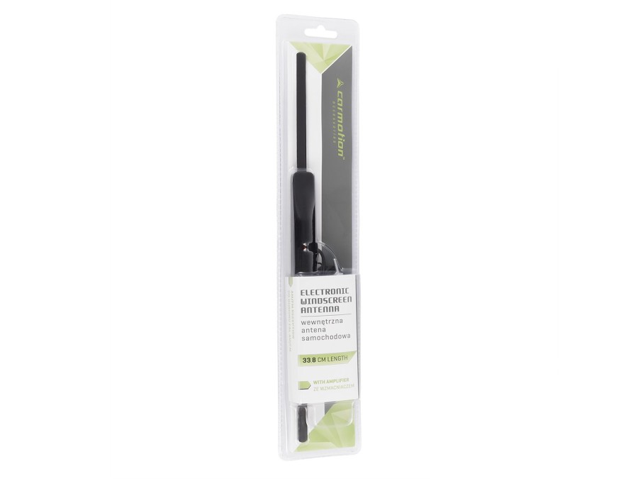 Antena wewnętrzna o szerokości 33,8cm, przeznaczona do odbioru sygnału radiowego AM/FM. Przystosowana do podłączenia do typowego radia samochodowego z gniazdem antenowym typu DIN.