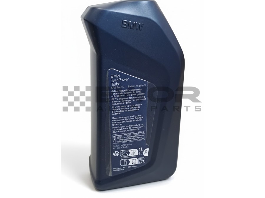BMW TwinPower Turbo 5W-30 Longlife-04 1L syntetyczny olej silnikowy przeznaczony do silników benzynowych i diesla. BMW TwinPower Turbo 5W-30 Longlife-04 wspierają zalety silników BMW i zapewniają pełen rozwój mocy przy wysokiej wydajności.