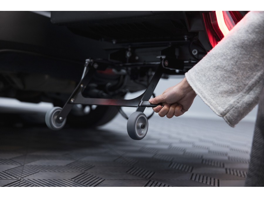 System składanych kół | Łatwe manewrowanie boxem w garażu – prowadzisz go jak walizkę. |