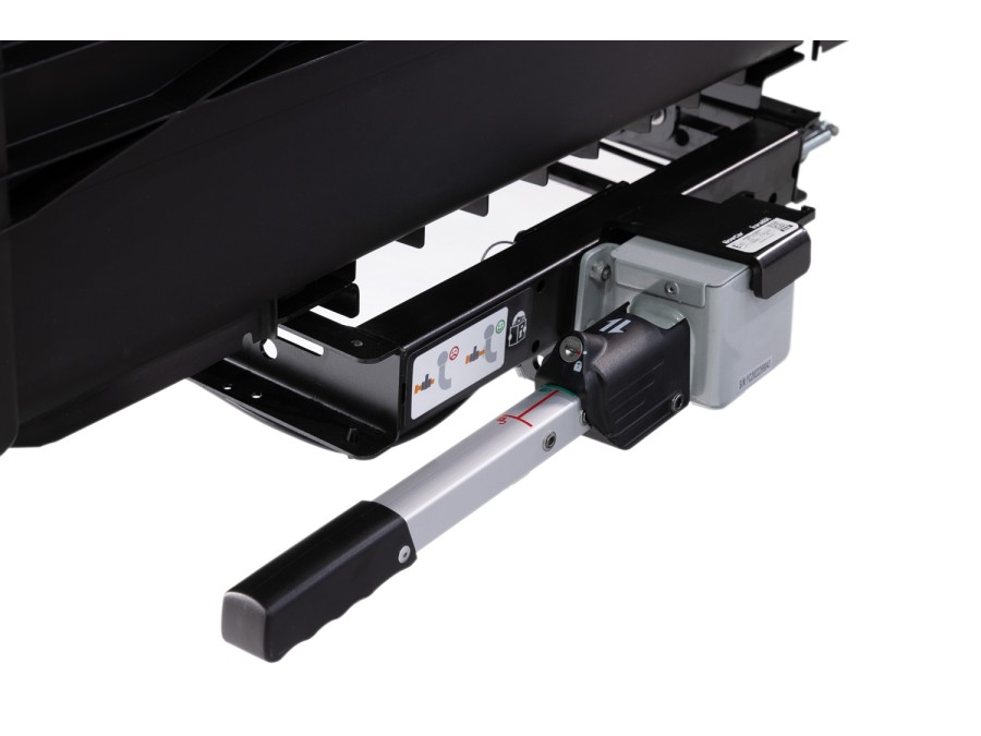 Gotowy do akcji w kilka sekund: Produkt przyjeżdża do Ciebie w pełni zmontowany. Dzięki ergonomicznej dźwigni blokowanej kluczem, osadzenie go na haku jest dziecinnie proste i nie wymaga narzędzi.
