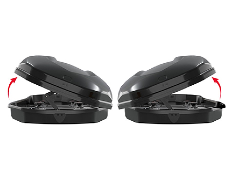 Elegancki i aerodynamiczny box dachowy wyposażony w podwójny system antykradzieżowy, który umożliwia zdjęcie zamka tylko wtedy, gdy pokrywa jest całkowicie zamknięta.