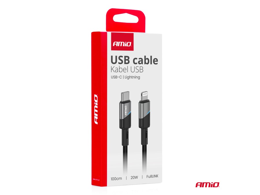Kabel do ładowania USB-C - IPHONE LIGHTNING 20W 100cm AMIO-03928