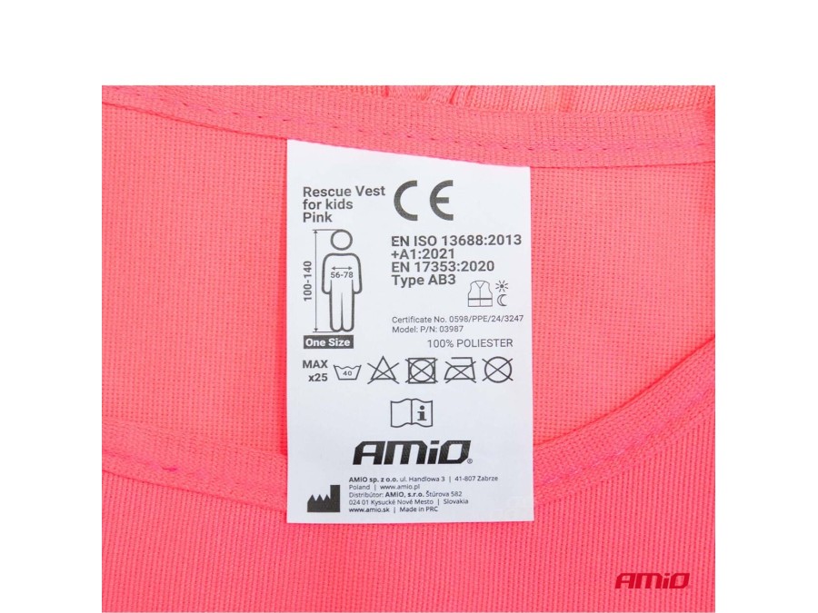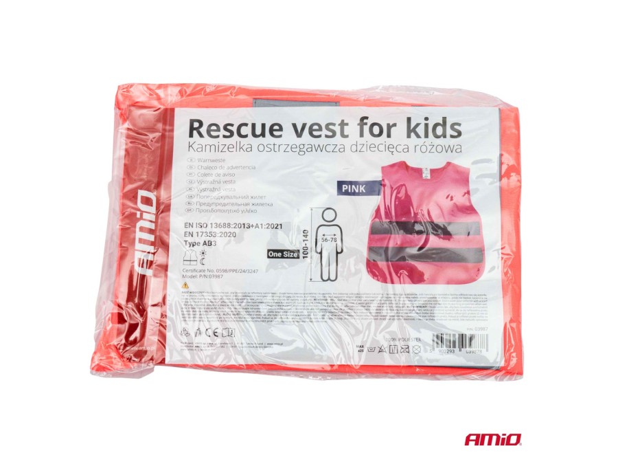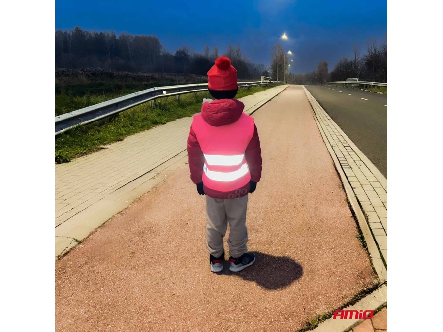 Kamizelka ostrzegawcza odblaskowa dziecięca różowa AMIO-03987