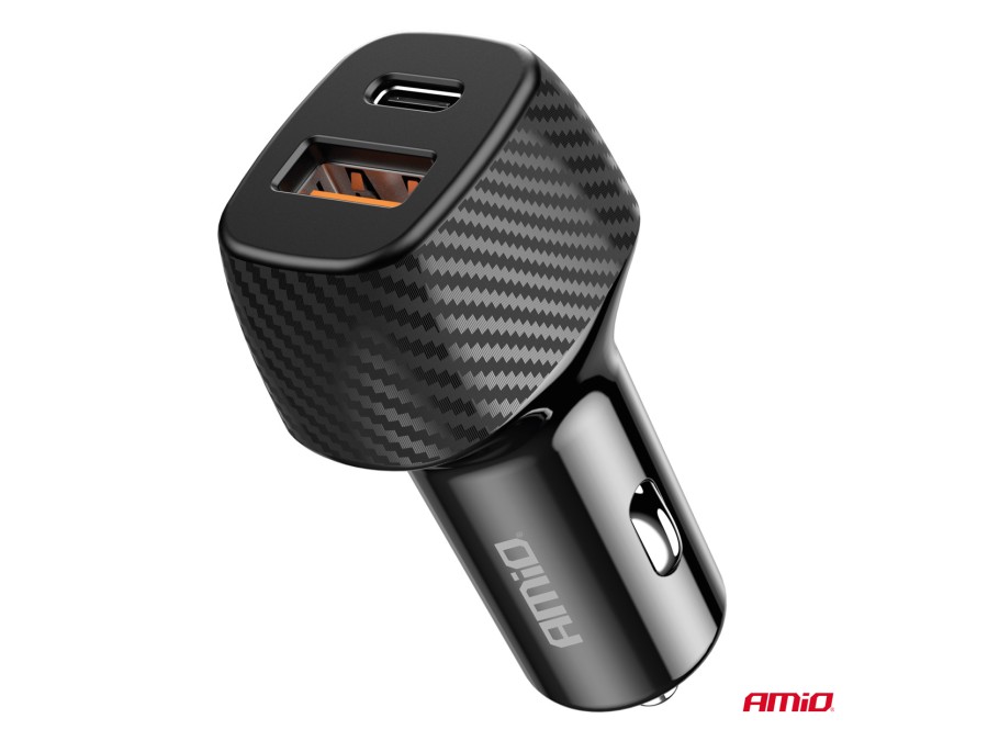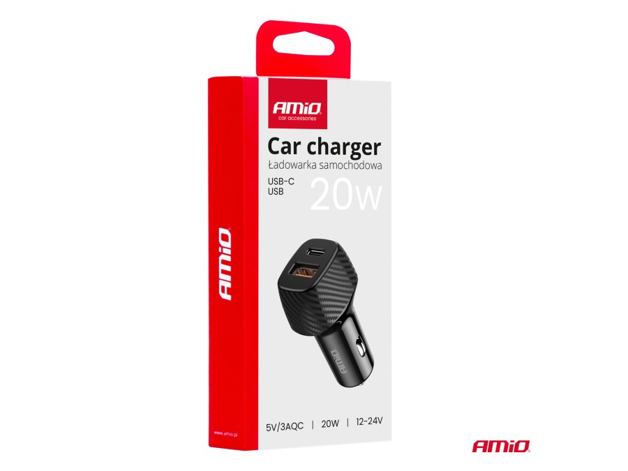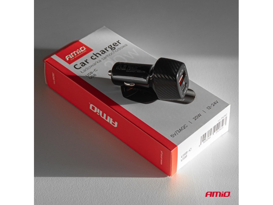 Ładowarka samochodowa QC+PD 20W USB-A + USB-C AMIO-04282