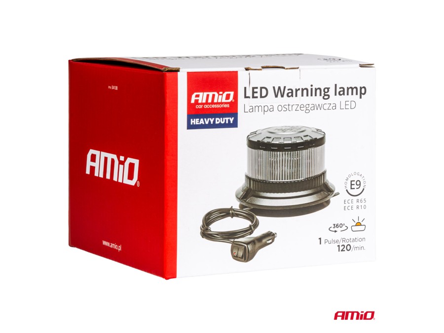 Lampa ostrzegawcza błyskowa kogut LED W28M 12V 24V AMIO-04108