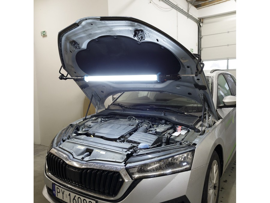 Dzięki dużej mocy 30 W oraz strumieniowi świetlnemu 3000 lm, urządzenie zapewnia bardzo jasne i równomierne oświetlenie całej przestrzeni roboczej, co znacząco poprawia komfort i precyzję pracy. Idealnie sprawdzi się przy naprawach pod maską, diagnostyce, lakiernictwie, a także w warsztatach blacharskich czy serwisach mobilnych.