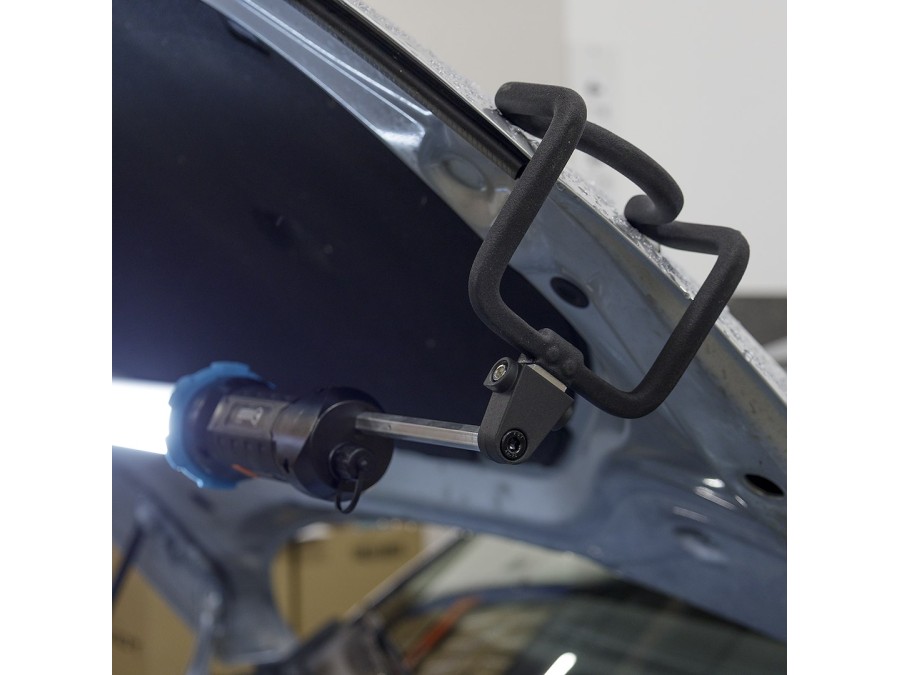 Lampa wyposażona jest w regulowane zaczepy powlekane miękką gumą, które umożliwiają stabilne przymocowanie jej np. do krawędzi maski samochodu, bez ryzyka porysowania lub uszkodzenia lakieru. Regulowany rozstaw zaczepów pozwala dopasować lampę do różnych szerokości pojazdów, dzięki czemu sprawdzi się zarówno w samochodach osobowych, jak i dostawczych.