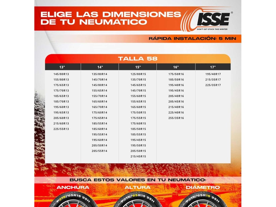 Łańcuchy śniegowe tekstylne Isse Classic rozmiar 58 EN16662-1-2020 ONORM 5121- 2021 2 szt.