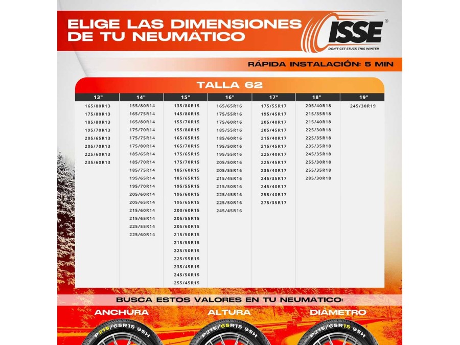 Łańcuchy śniegowe tekstylne Isse Classic rozmiar 62 EN16662-1-2020 ONORM 5121- 2021 2 szt.