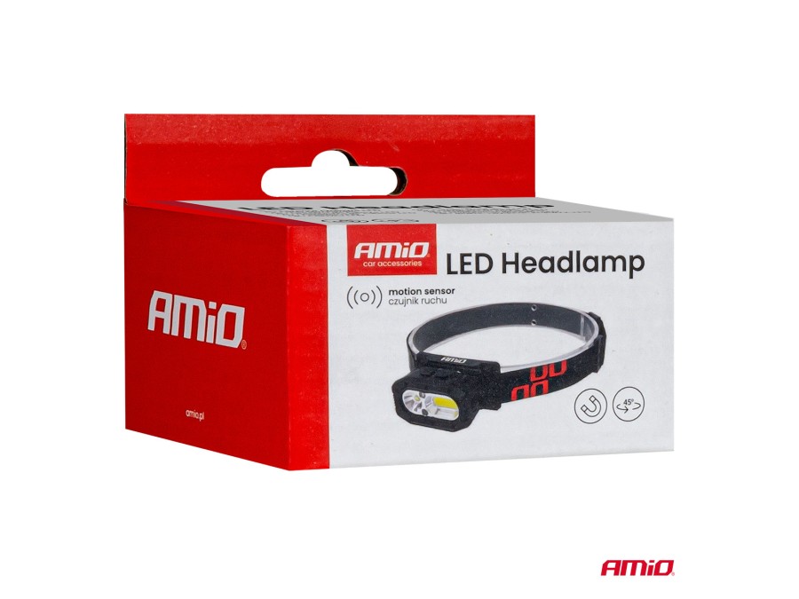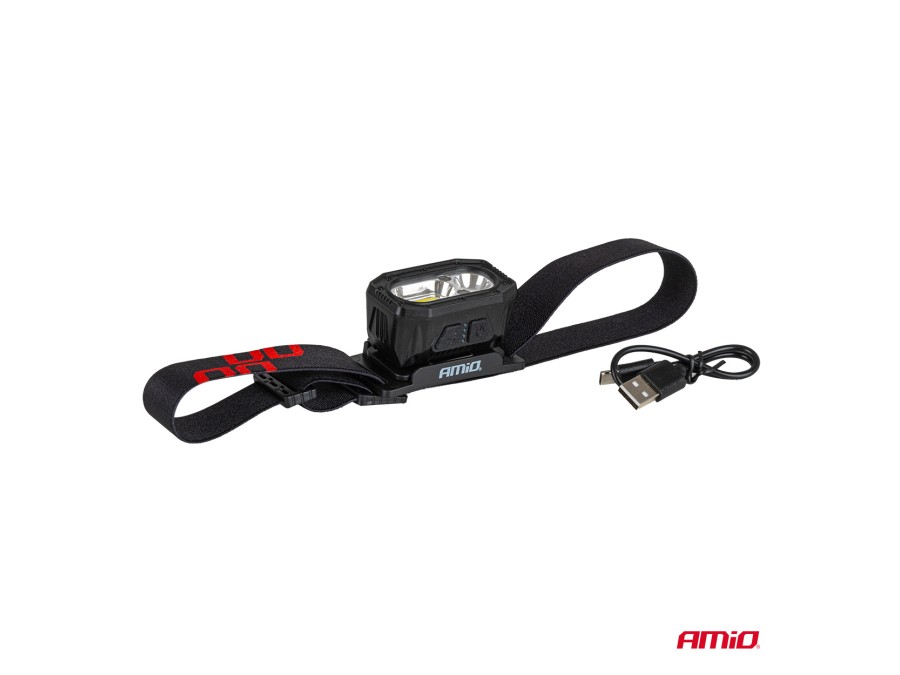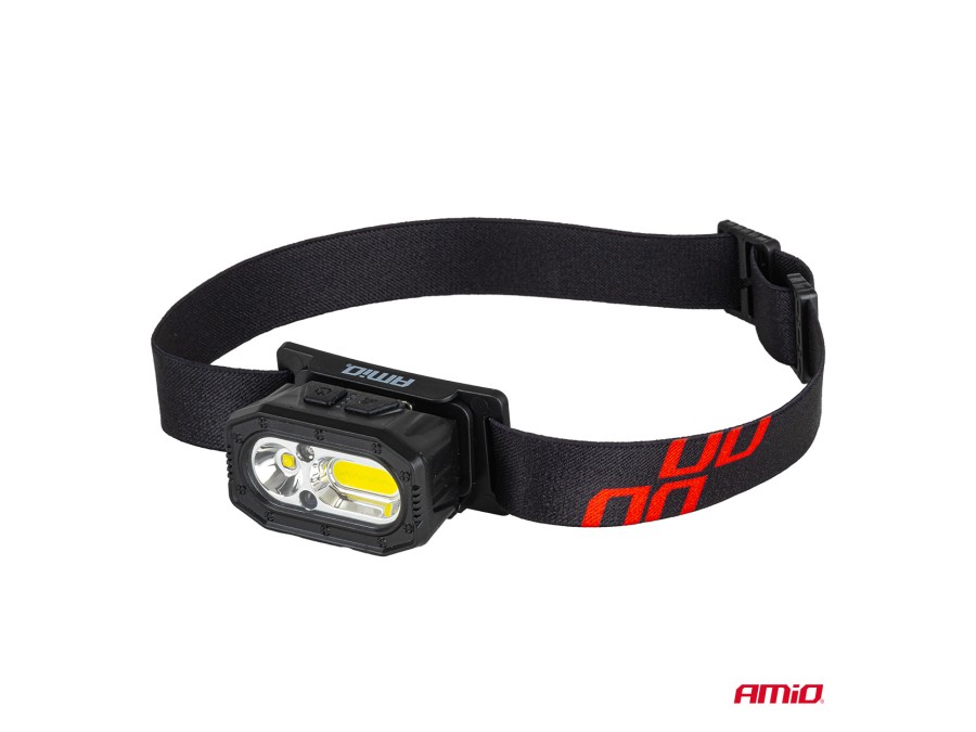 Latarka czołowa akumulatorowa z czujnikiem ruchu XPG+COB 1000mAh (BATT) AMIO-04663