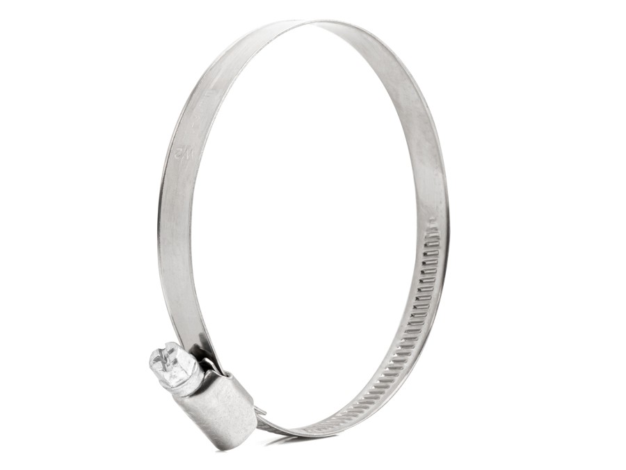 Solidna obejma ślimakowa wykonana ze stali nierdzewnej klasy W2, przeznaczona do szybkiego i pewnego mocowania przewodów elastycznych, węży gumowych oraz rurek w instalacjach motoryzacyjnych, przemysłowych i hydraulicznych.