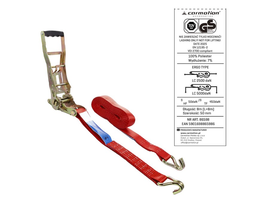 Pas transportowy z napinaczem ERGO, 50 mm, 8 m, max 5000 kg
