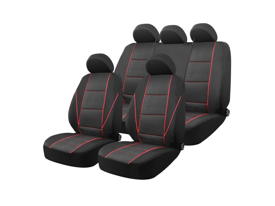 Zestaw 9-częściowy obejmuje pokrowce na dwa fotele przednie, tylną kanapę dzieloną oraz komplet zagłówków. Uniwersalne dopasowanie do większości modeli samochodów osobowych.