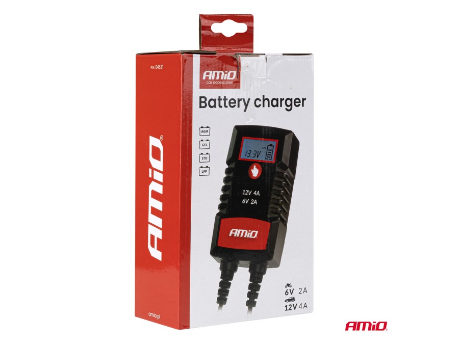 Prostownik cyfrowy AGM GEL STD LiFePo4 MAX 4A 6V 12V PRO HOOK AMIO-04531