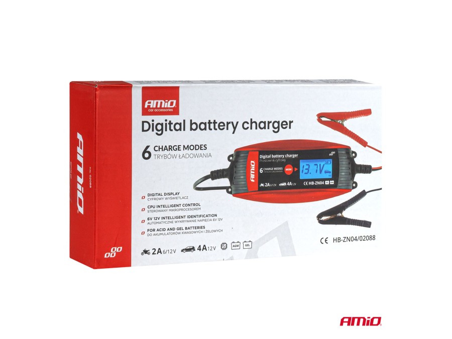 Prostownik cyfrowy ładowarka do akumulatora 6V 12V - 2A 4A - DVL DBC AMIO-02088