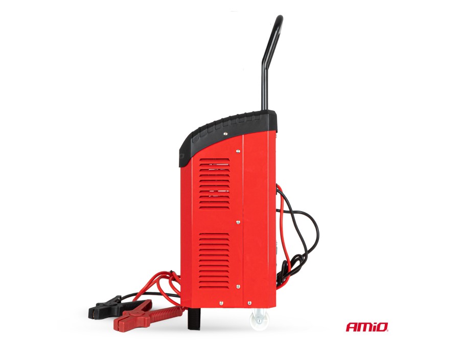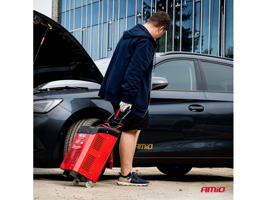 Prostownik AMiO z funkcją rozruchu to nowoczesne, mikroprocesorowe urządzenie przeznaczone do ładowania i wspomagania rozruchu akumulatorów 12V i 24V. Dzięki zastosowanej technologii jest niezawodnym rozwiązaniem dla warsztatów samochodowych, serwisów oraz wymagających użytkowników.