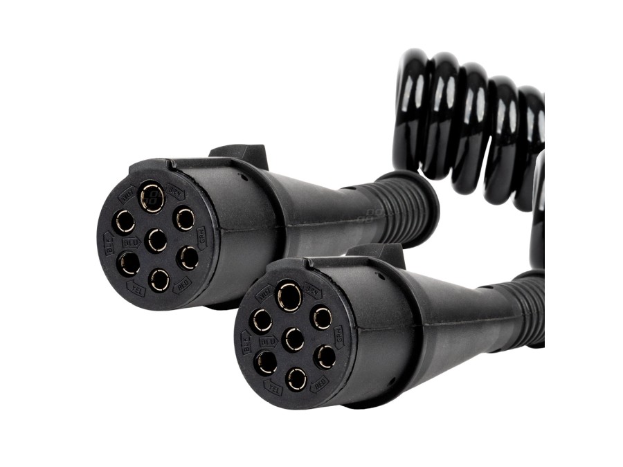 Profesjonalny przewód spiralny do naczepy wyposażony w dwa wtryskowe złącza 7 PIN typu N, przeznaczony do instalacji 24V. Zastosowanie technologii wtryskowej gwarantuje wyjątkową szczelność, trwałość i odporność na uszkodzenia mechaniczne oraz warunki atmosferyczne.
