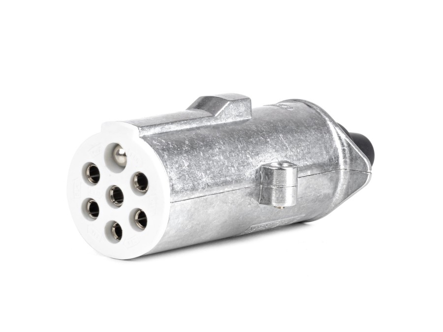 Profesjonalna wtyczka przyczepy wykonana z aluminium, przeznaczona do instalacji elektrycznych 24V w pojazdach ciężarowych oraz zestawach z przyczepą lub naczepą. Standard typ S stosowany jest w europejskich systemach połączeń elektrycznych.