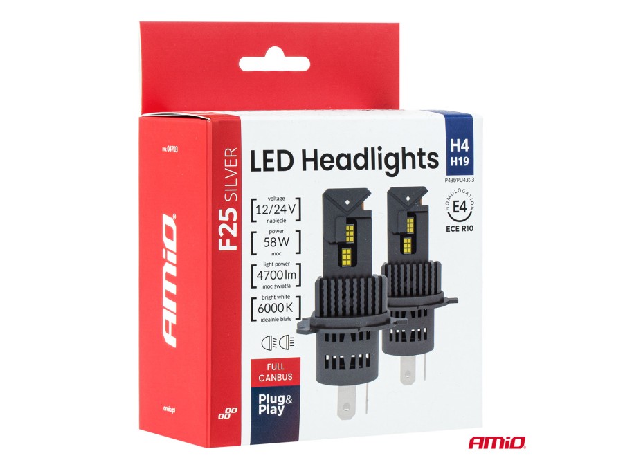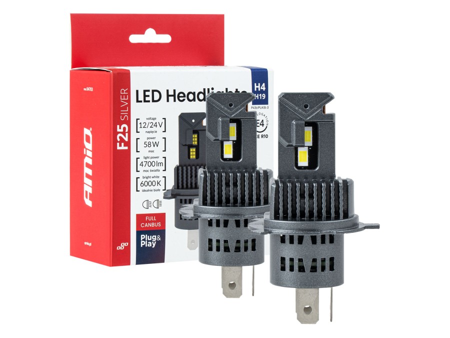 Żarówki samochodowe LED F25 SILVER FULL CANBUS 58W H4 H19 12V 24V AMIO-04703