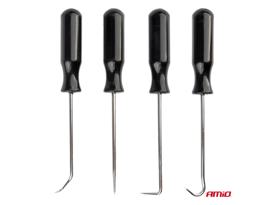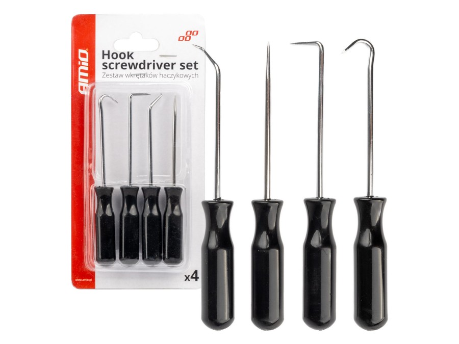 - 4 różne końcówki: Prosta, zakrzywiona, 90° i haczykowata – idealne do wielu zastosowań, takich jak podważanie, wyciąganie czy manipulacja małymi elementami.